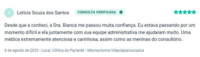 Em situações em que a intervenção cirúrgica é necessária, mantenho meu compromisso com uma abordagem integral. Ao considerar os aspectos físicos, emocionais e psicológicos da paciente, busco minimizar o impacto da cirurgia e favorecer uma recuperação mais suave, com comunicação transparente sobre os procedimentos, promovendo assim uma relação de confiança, tão importante para o sucesso de qualquer tratamento.